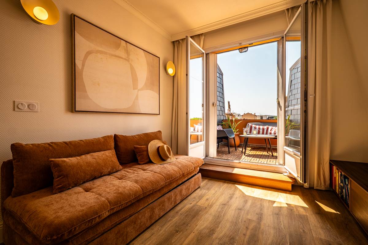 Offrez-vous une parenthèse stylée dans ce belvédère de 68 m2, pensé comme une galerie de vie. Niché au dernier étage d'une demeure d'architecte du XIXe siècle, cet appartement rénové en 2026 est un véritable bain de lumière grâce à sa triple exposition.