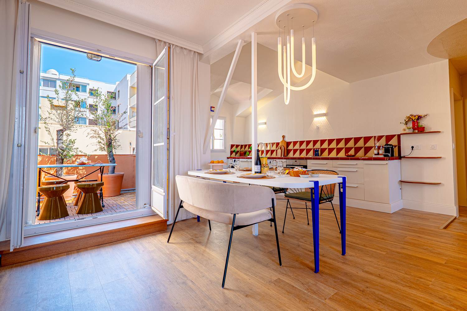🎨 Profitez d'un intérieur soigné, décoré d'œuvres originales et d'une bibliothèque bilingue (FR/EN) dédiée à l'art et au design. Pour votre confort, l'appartement dispose d'une chambre avec un lit Queen Size, d'un salon avec un canapé convertible Queen Size, et d'un véritable dressing pour vos effets personnels.